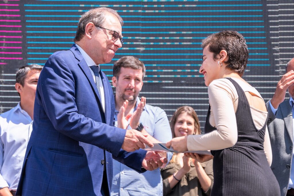En ese marco, Tassano premió a los ganadores del concurso Emprender Joven Lourdes Markevicz, en primer lugar; Florencia García, en segundo; y Luz Mendíaz y Rodrigo Porzio, en el tercero.